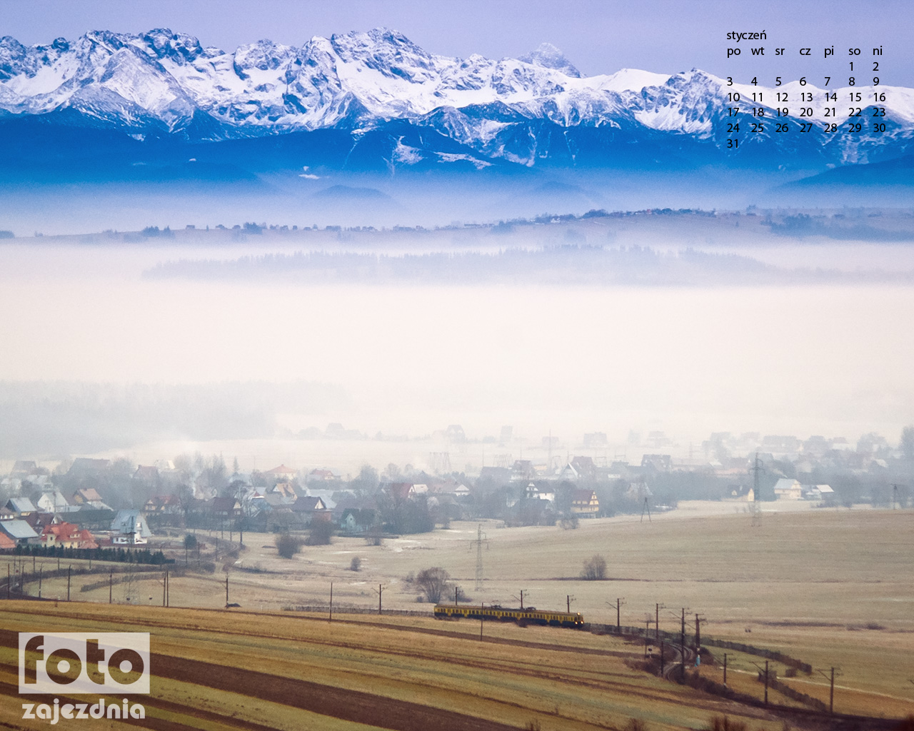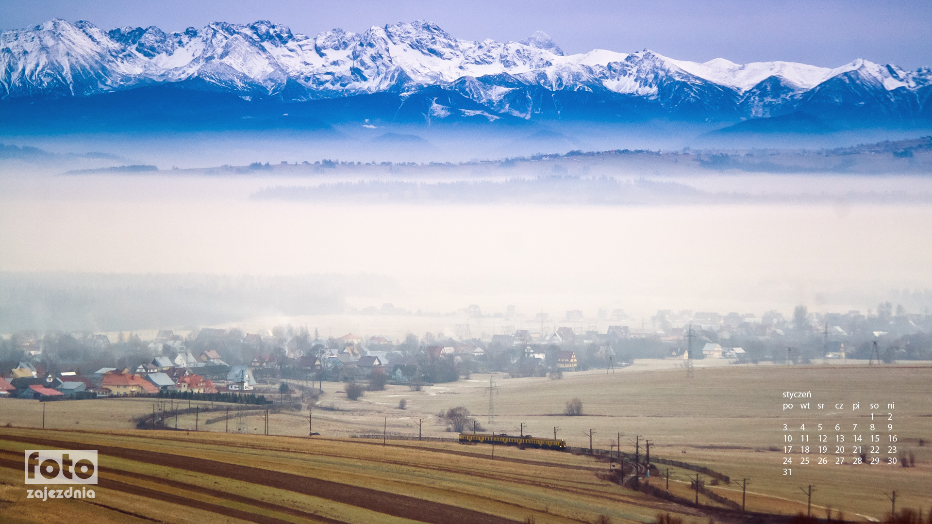Na styczeń proponuję tapetę kolejową z Tatrami.